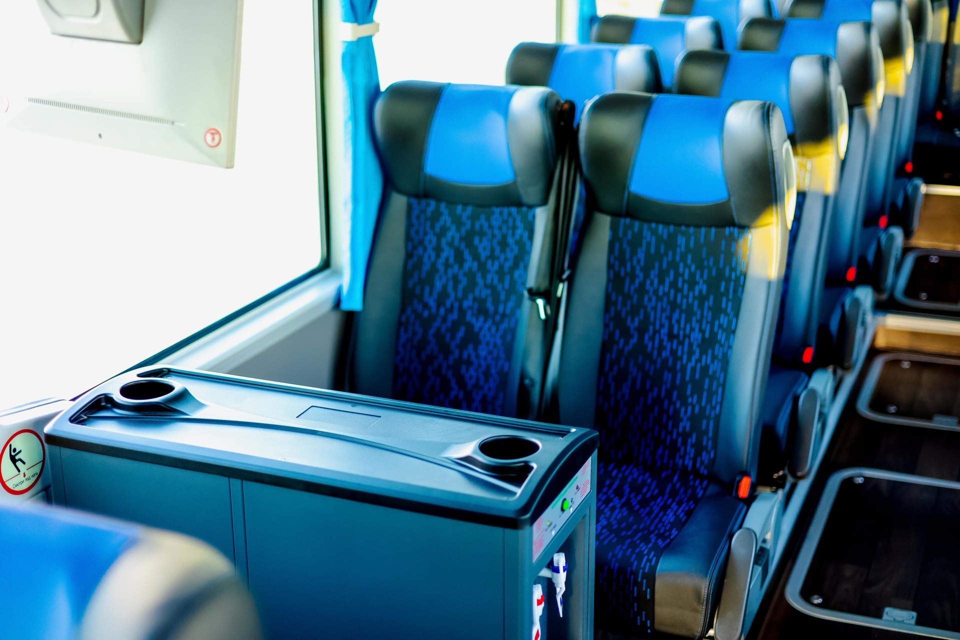 - В зависимости от конфигурации и марки автобуса, посадочные места на последнем ряду, а также перед вторым выходом могут быть не откидными.