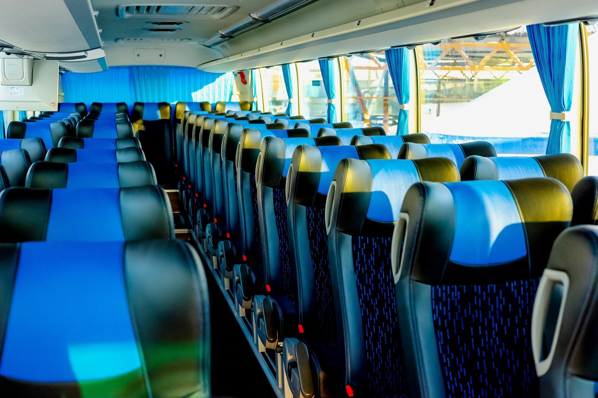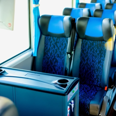 - В зависимости от конфигурации и марки автобуса, посадочные места на последнем ряду, а также перед вторым выходом могут быть не откидными.