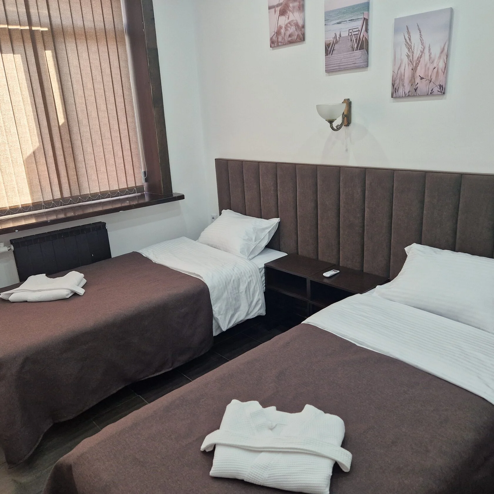 - При бронировании трёхместного номера, предоставляется размещение категории TWIN+ EXB (стандартный номер с двумя раздельными кроватями + дополнительное спальное место( возможно еврораскладушка))